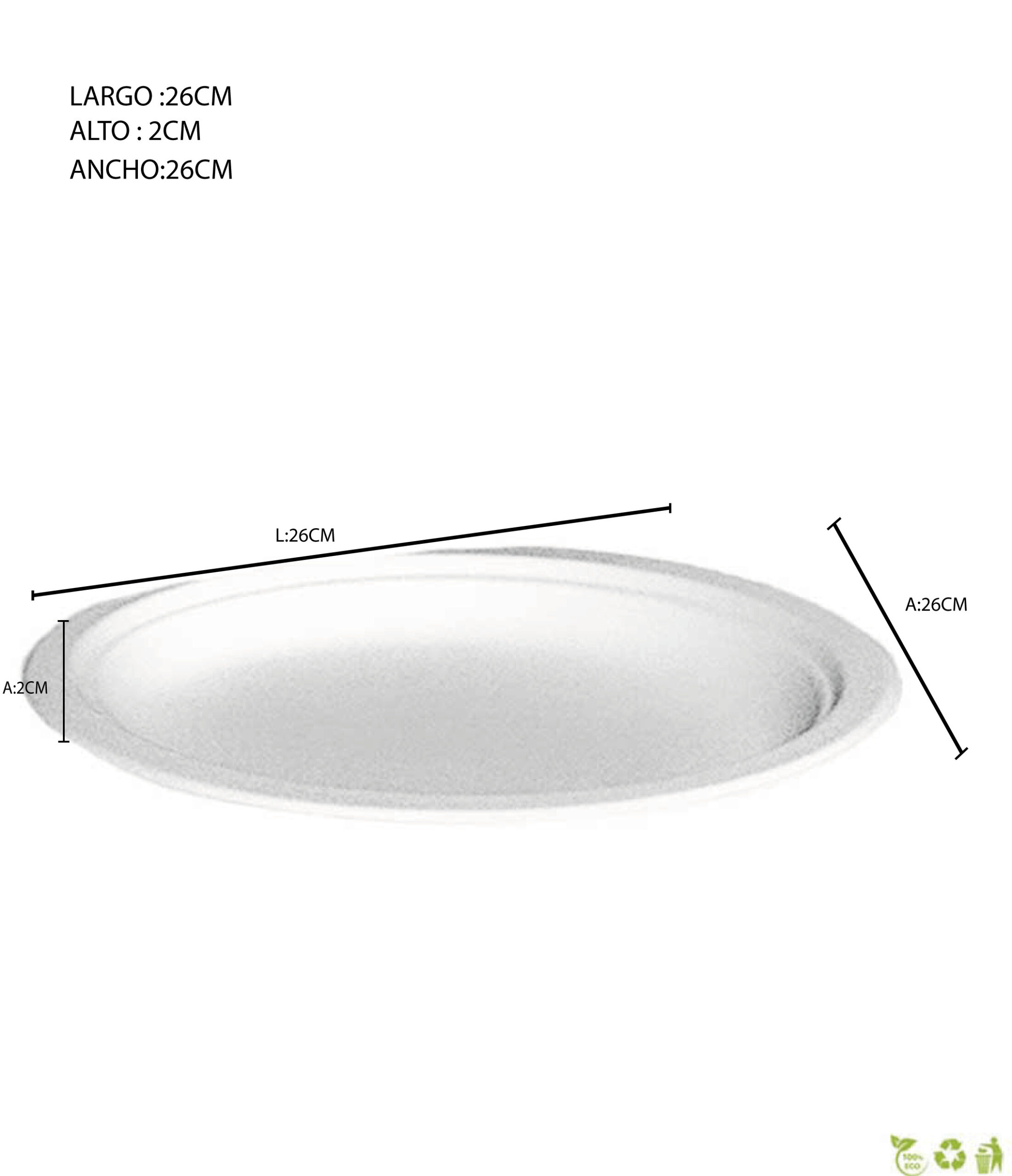 El plato redondo biodegradable de 26 cm sin divisiones es una solución ecológica y funcional para el servicio de alimentos en el sector gastronómico. Elaborado a partir de fibras naturales como la caña de azúcar (bagazo), este plato es completamente biodegradable, compostable y libre de plásticos, lo que lo convierte en una opción responsable para negocios comprometidos con el medio ambiente.